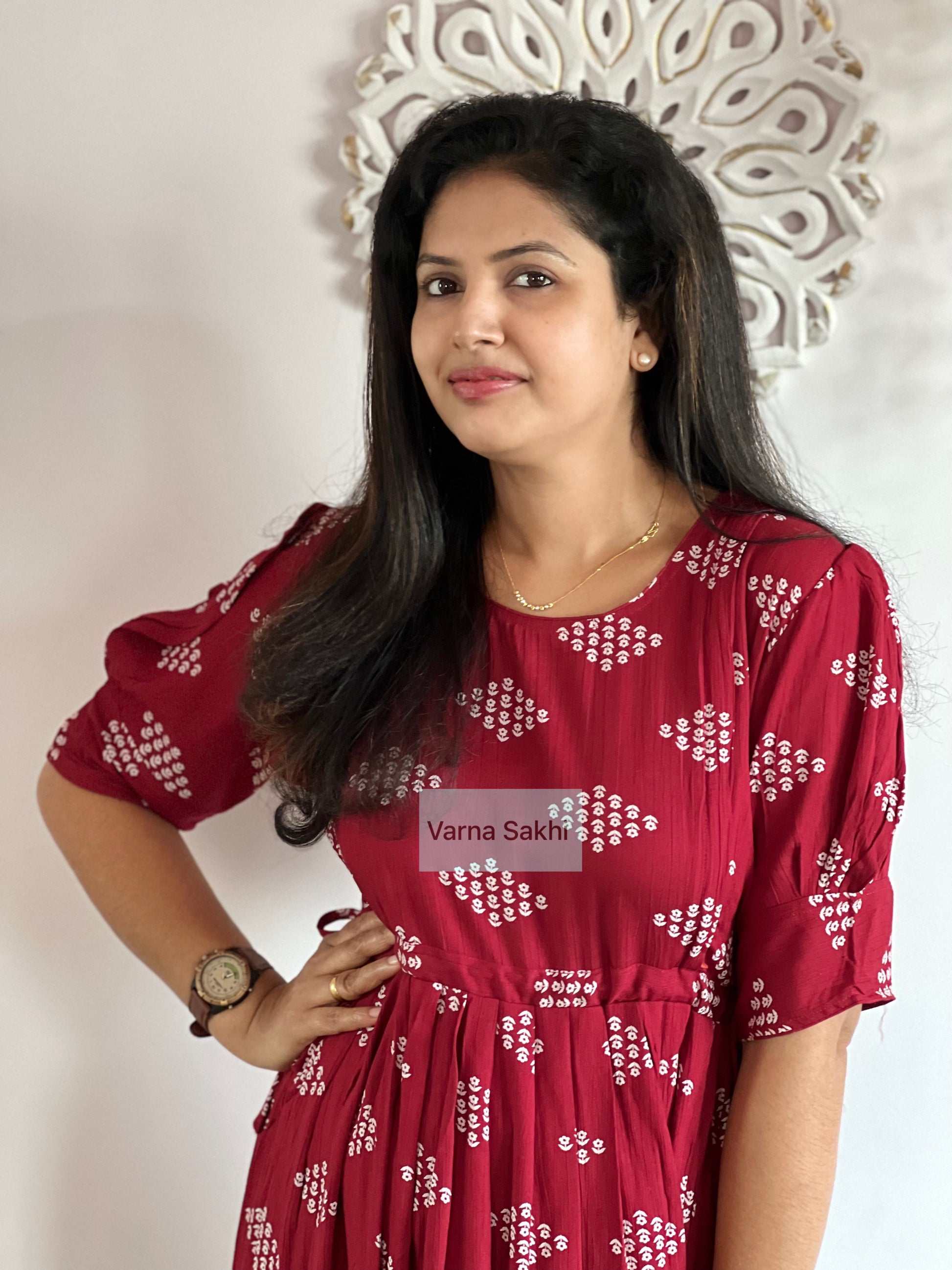 Wrinkle Rayon Feeding Dress with feeding zips on both sides ,without lining .