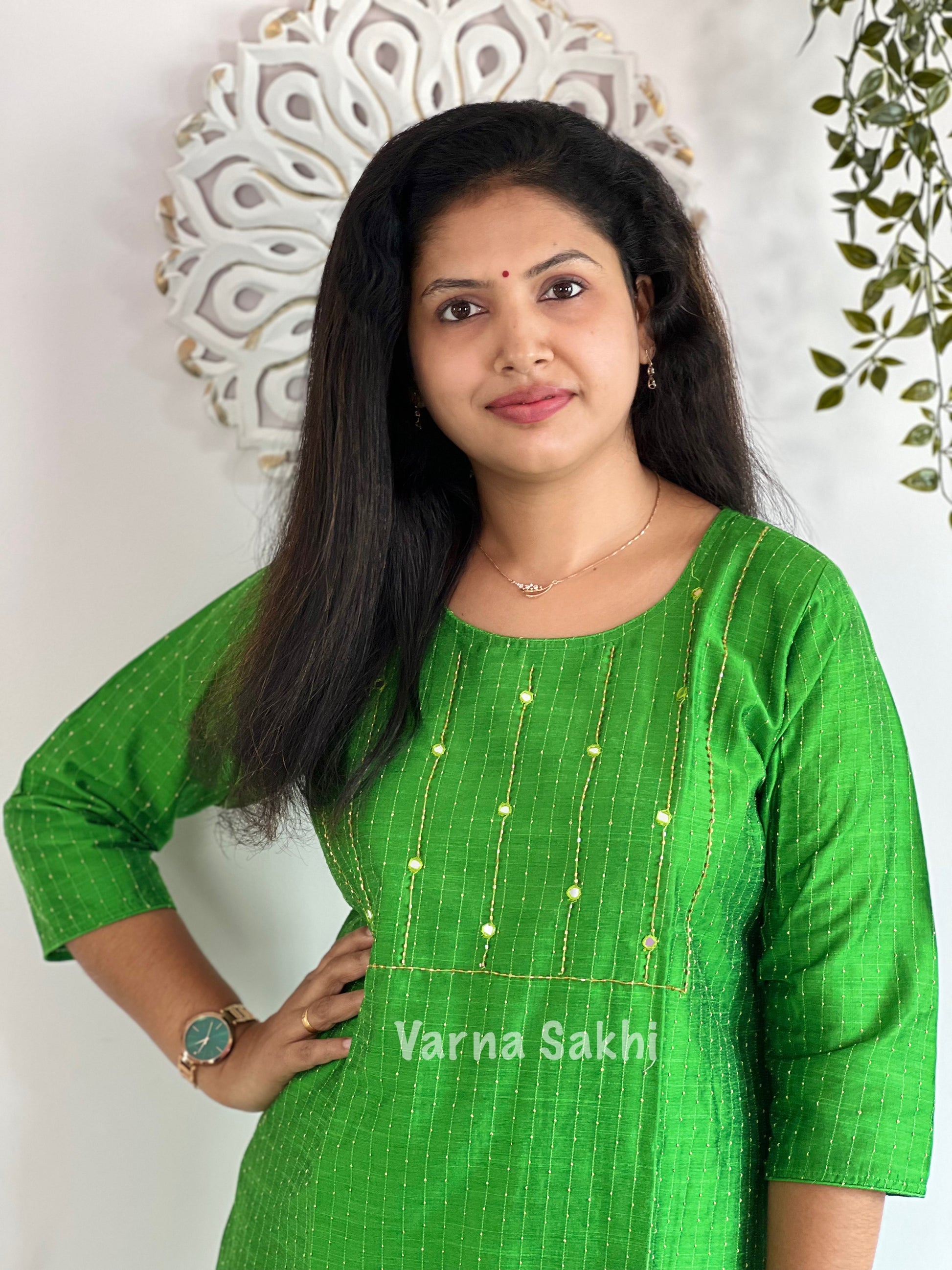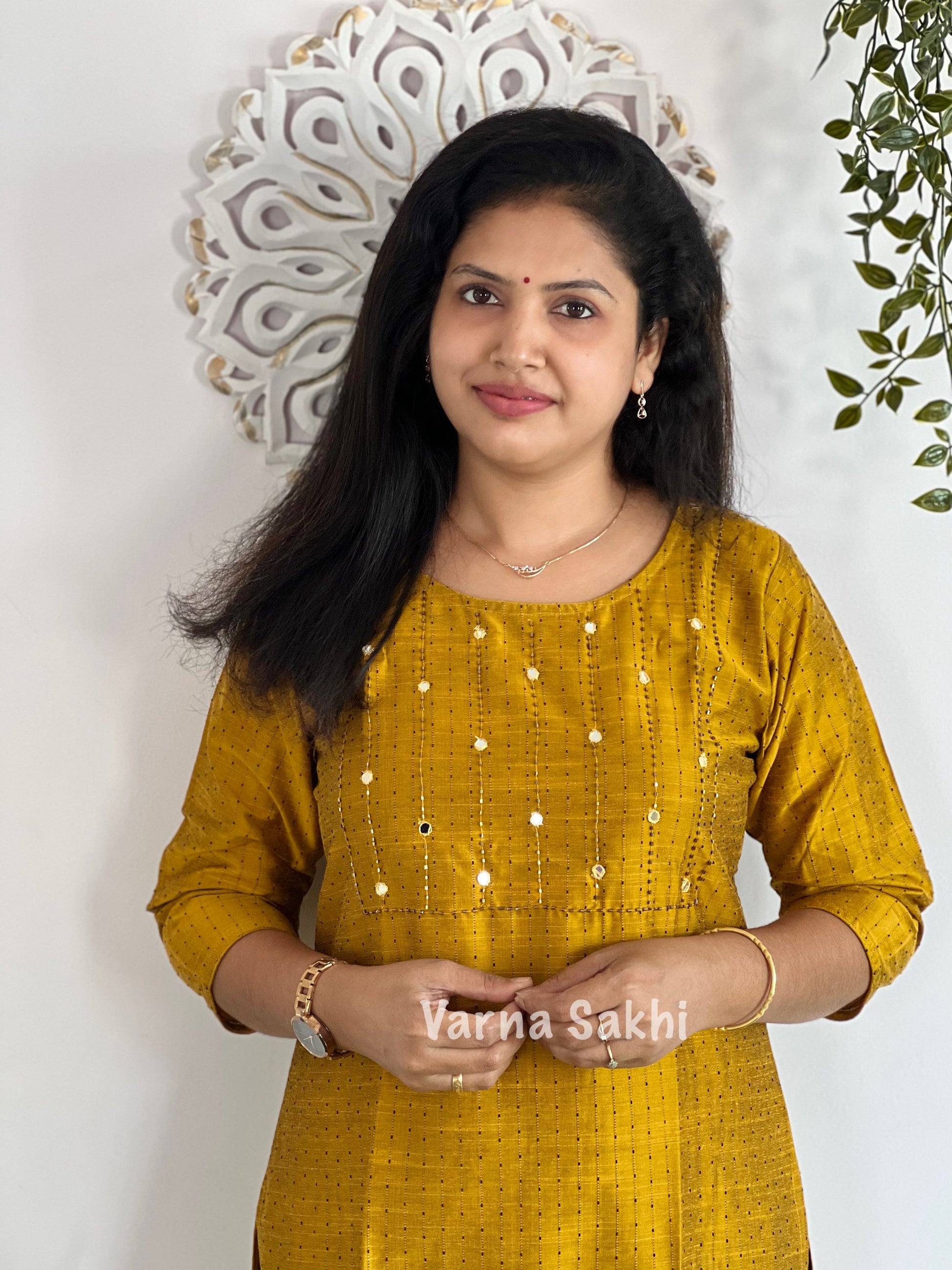 Slub Silk kurta with hand work at the yoke with side slit and lining.