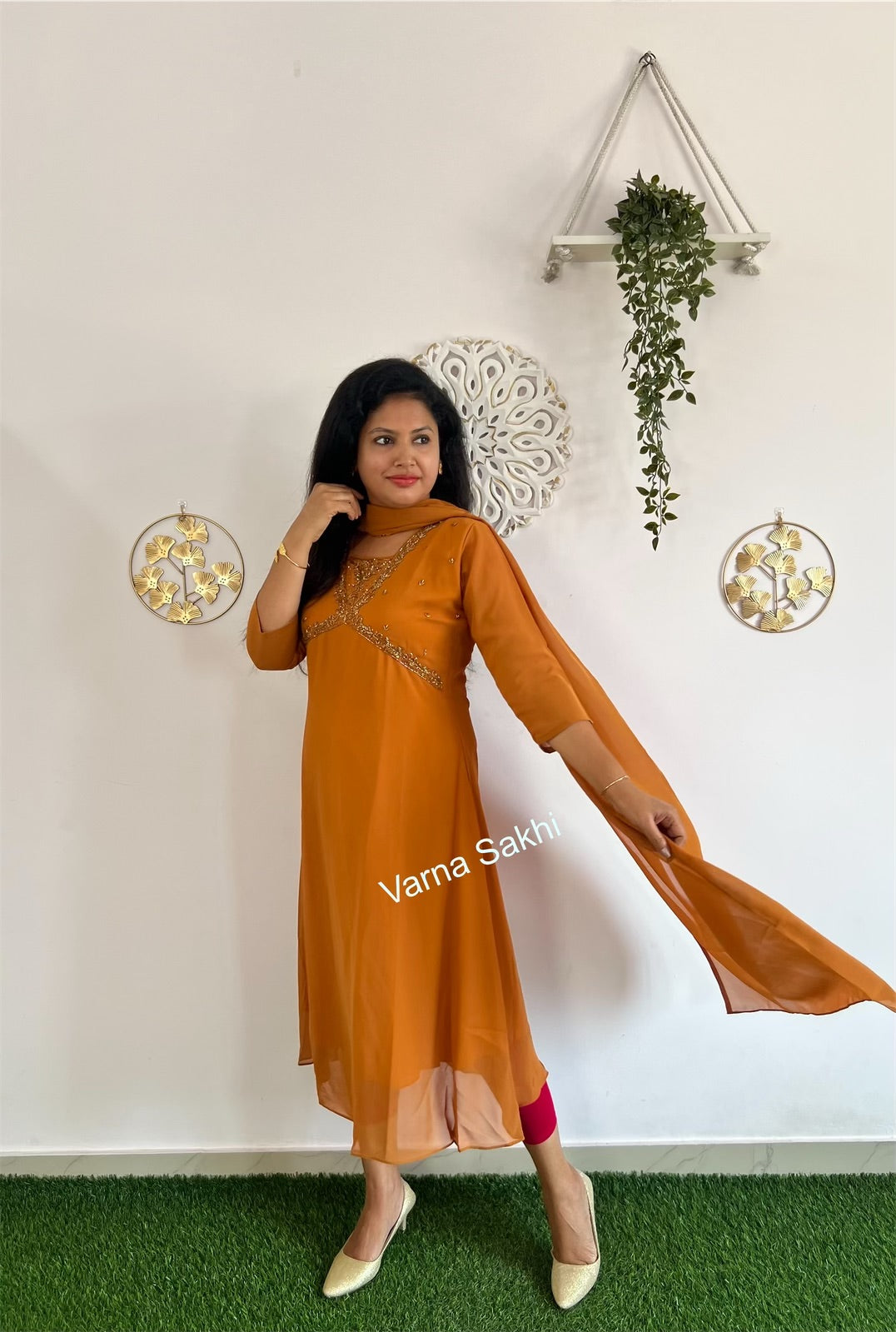 Georgette A line,Alia cut heavy handworked Kurta with lining and with Duppatta