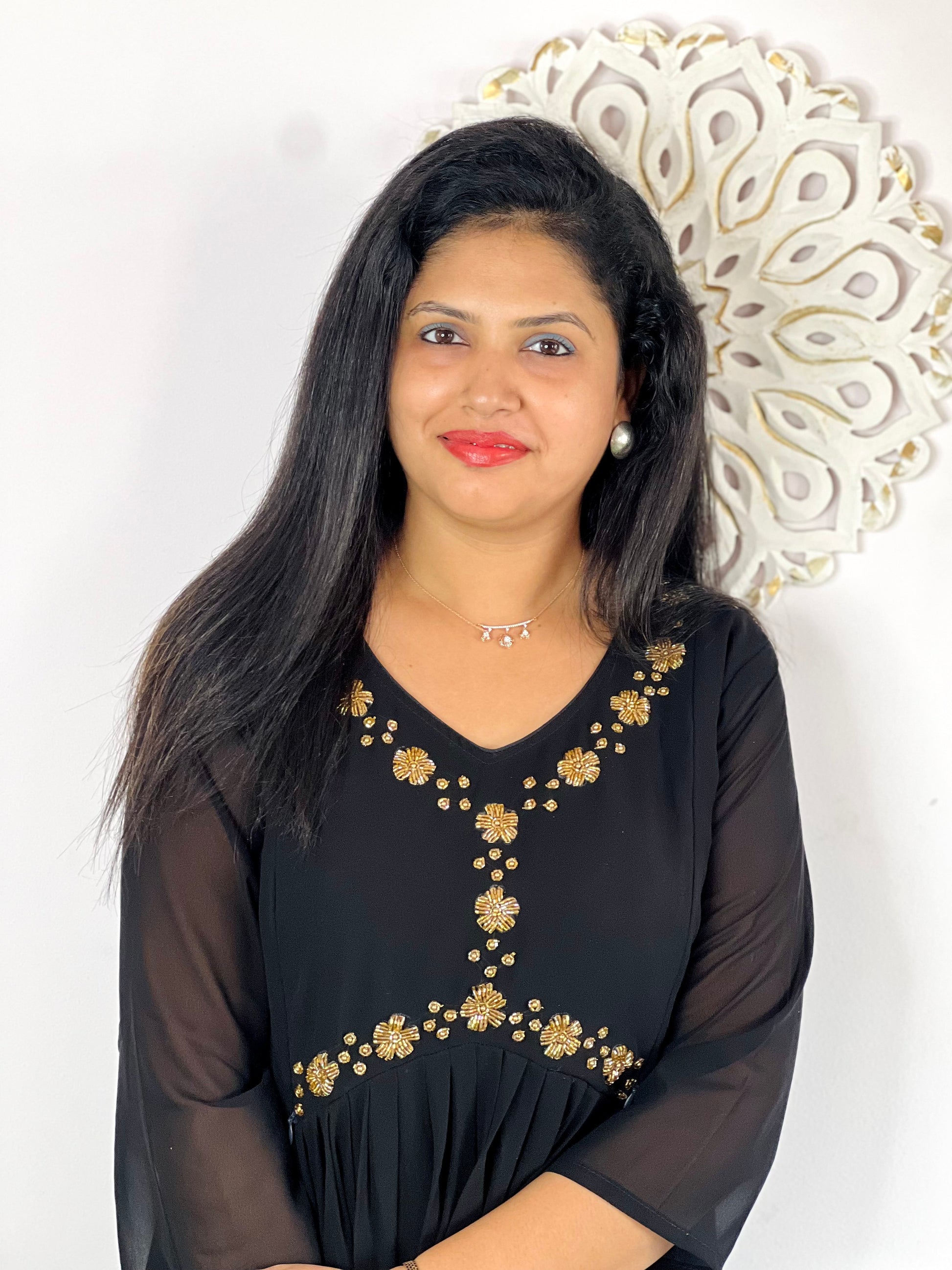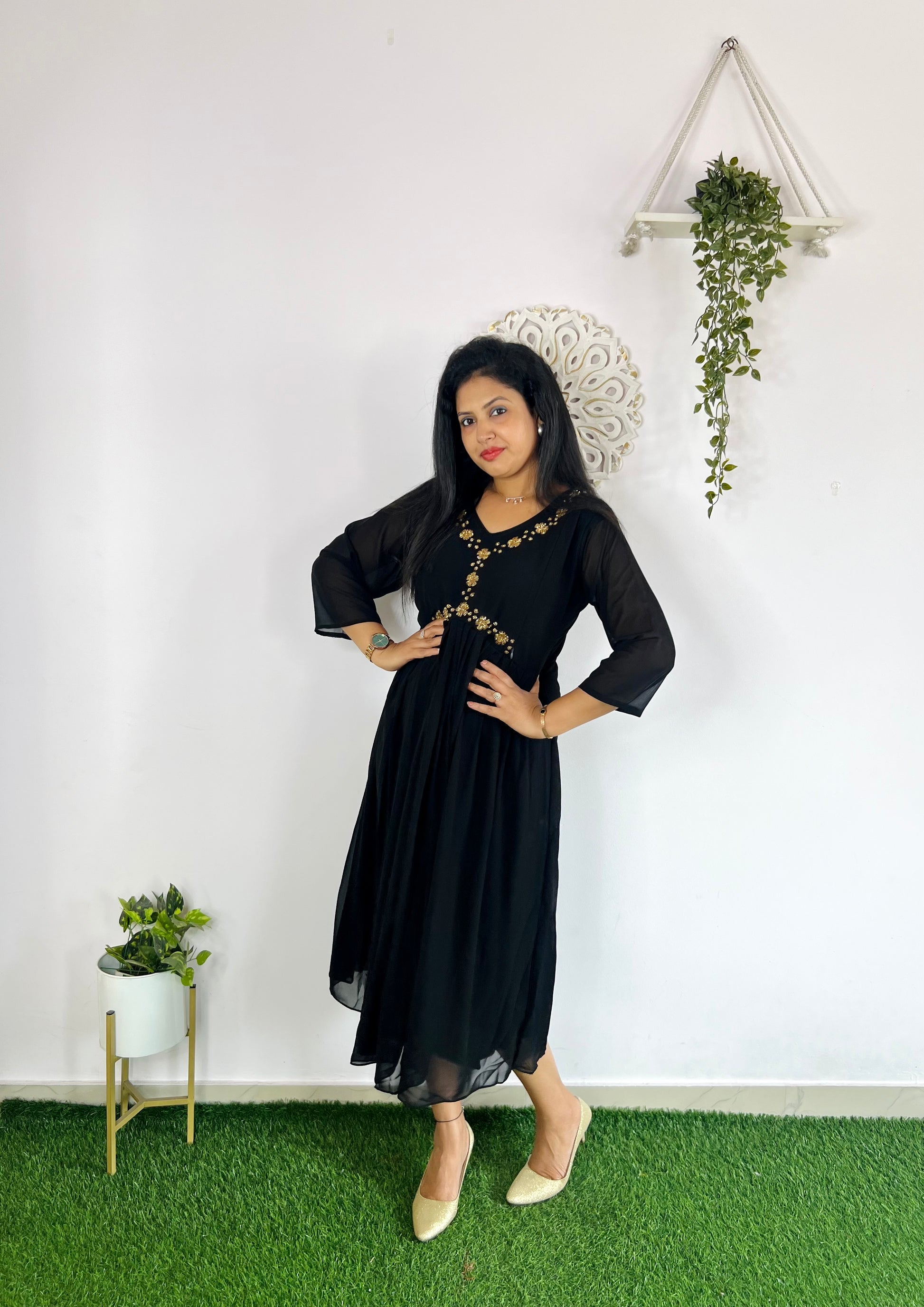 Georgette Heavy Handwork Feeding Dress with feeding zips on both sides ,with lining
