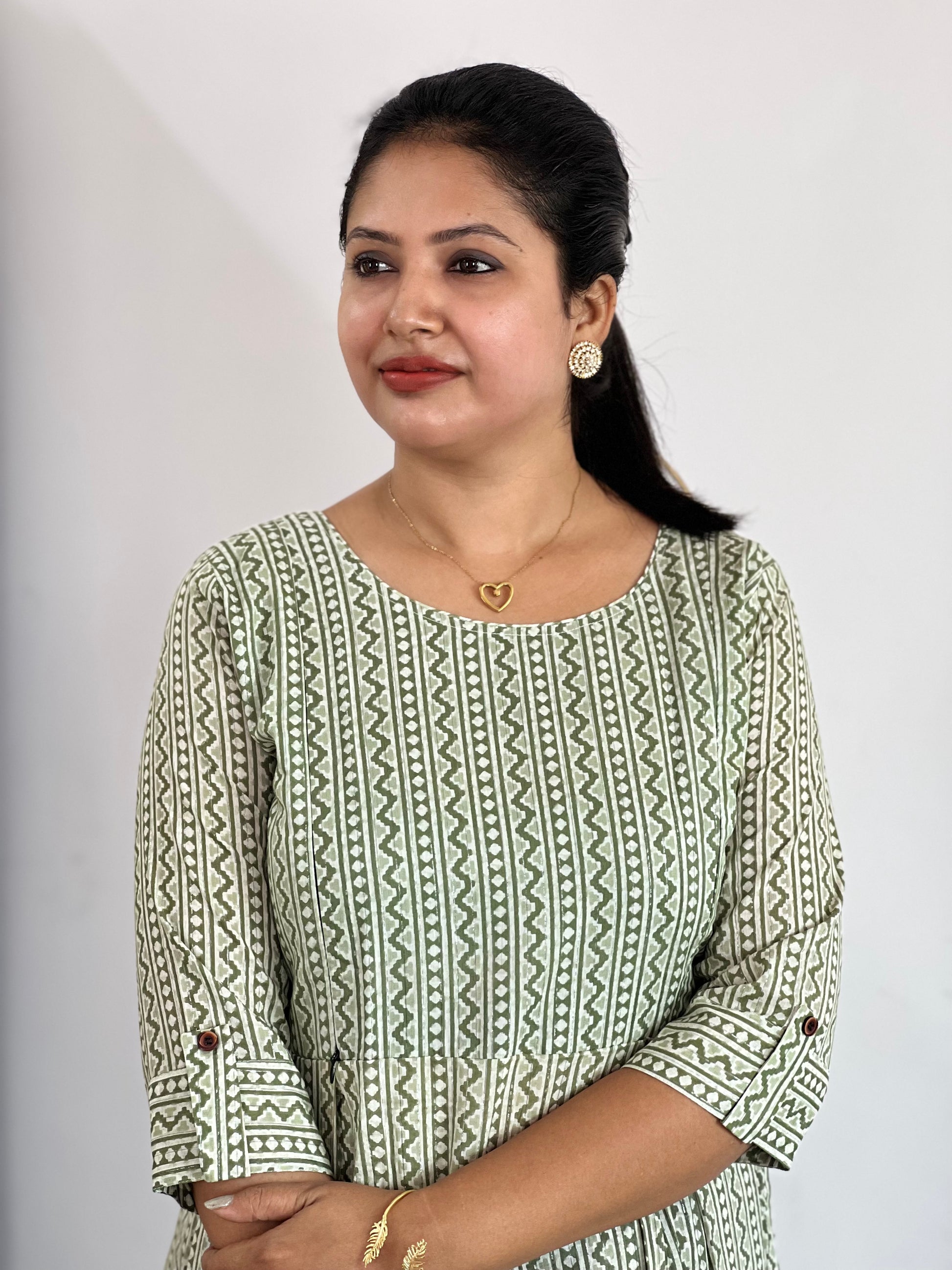 Cotton Feeding Dress with lining on top part only and with feeding zips on both side