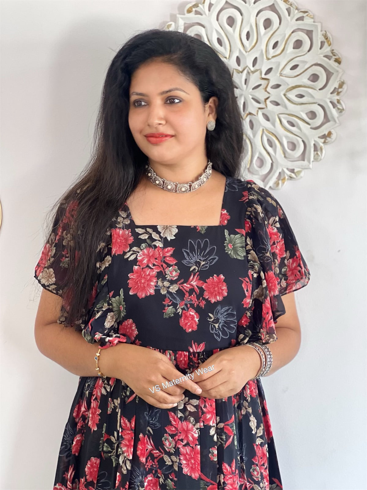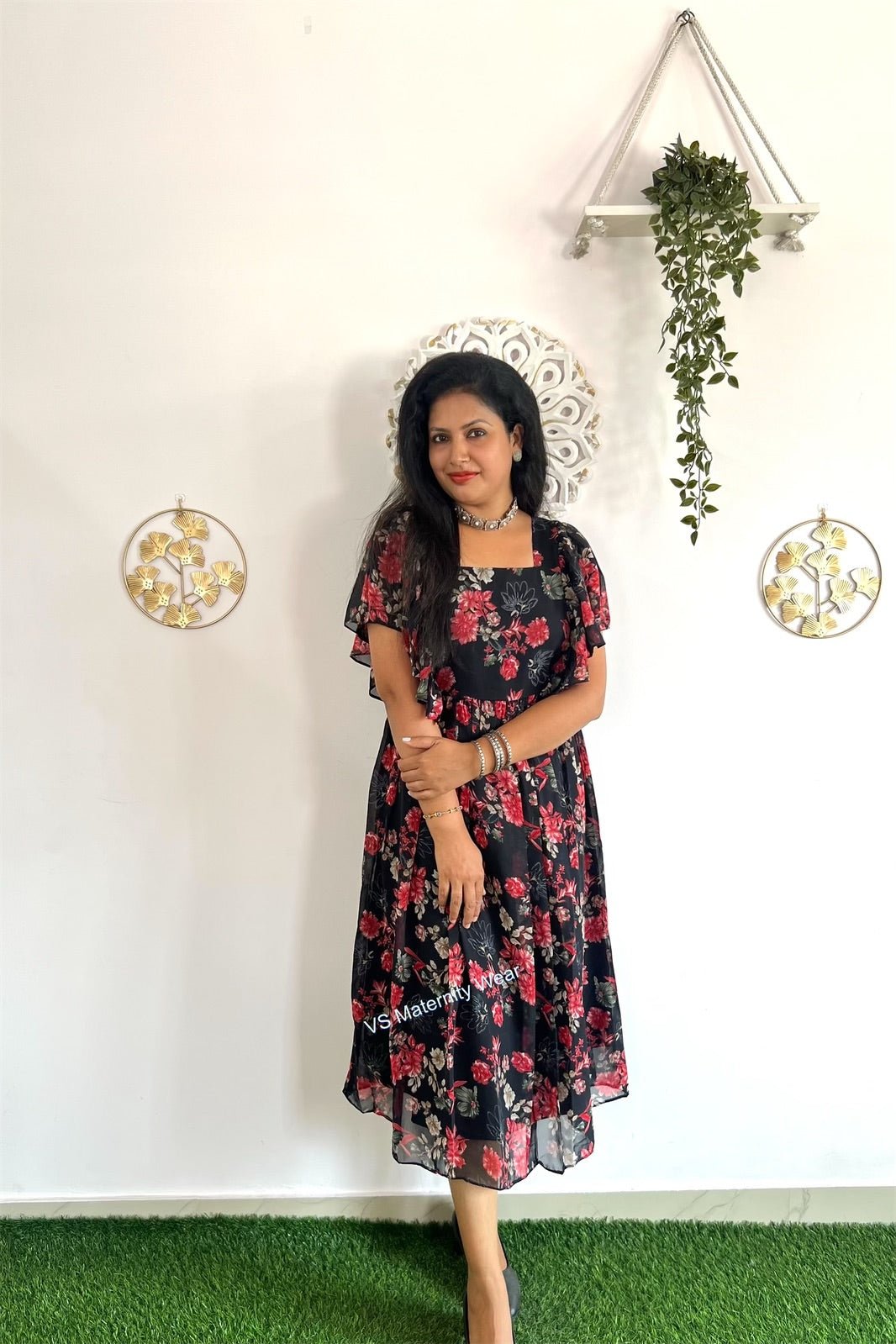Georgette Feeding dress with lining,butterfly sleeves and feeding zips on both sides