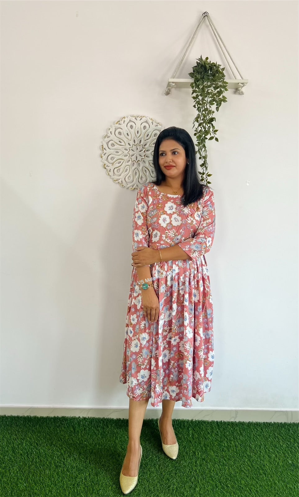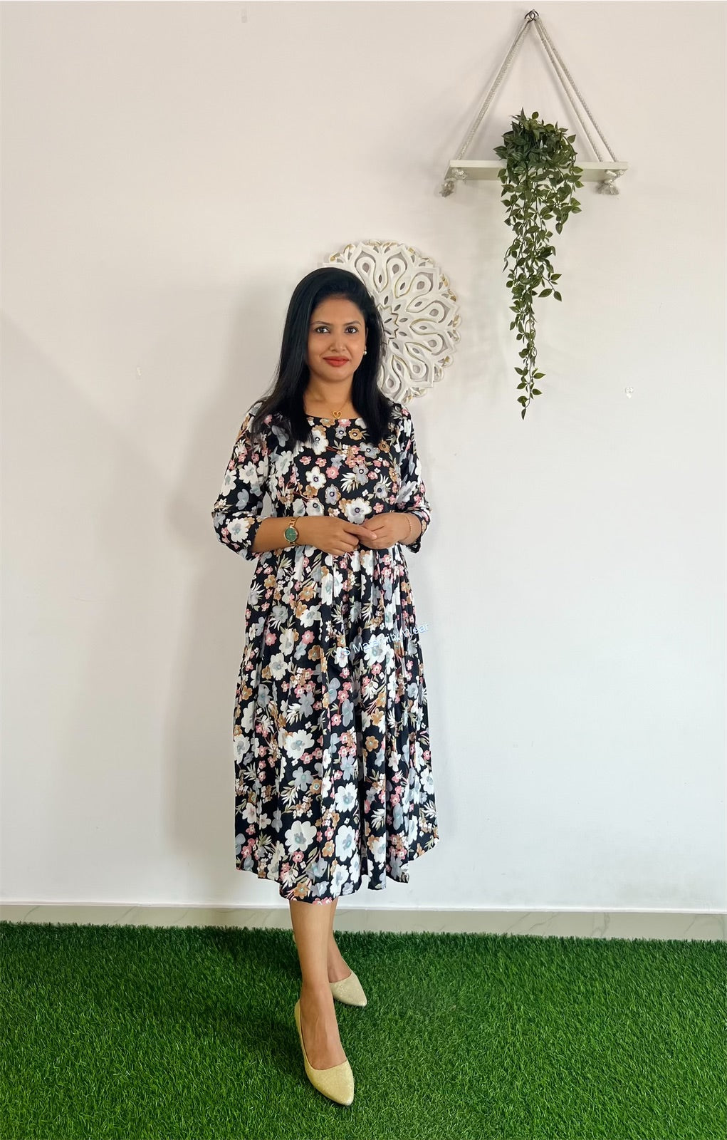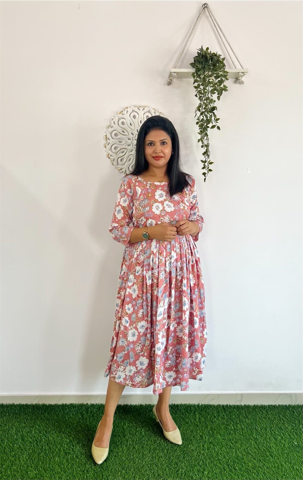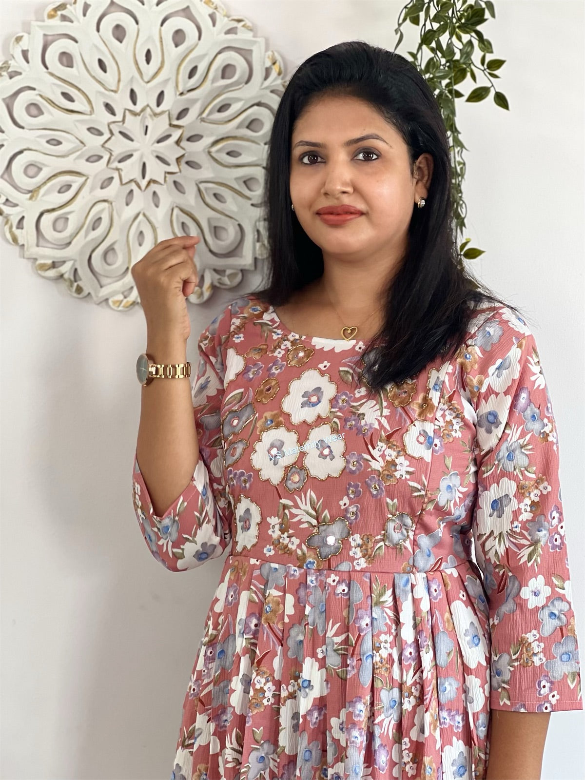 Wrinkle Rayon Feeding Dress with crepe lining,heavy handwork and feeding zips on both sides